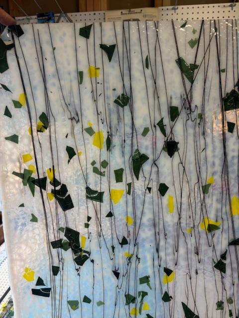 10" x 10"� - Green and Yellow Fracture on Clear w/Black Streamer (Bullseye 4112)